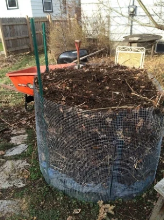 As recommended by Dr. Ingham, this pile is inoculated with some old rotted stump that was thoroughly infused with fungus as well as some nicely rotted leaves from my garden. The materials were all blended in the back of my truck before being blended again while filling the compost bin.